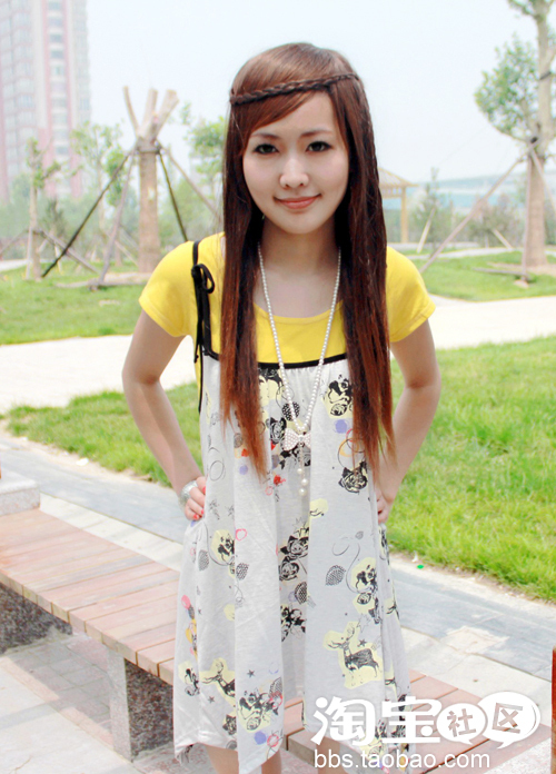 配上亮丽的糖果色小单裙,多了些许的邻家女孩感觉,很赞哦!