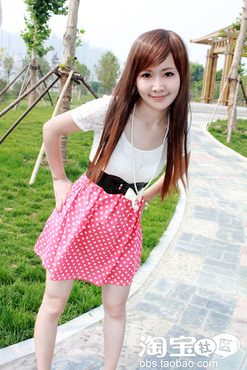 蕾丝的设计尽显小女人的情怀,与时下流行的波点拼接,