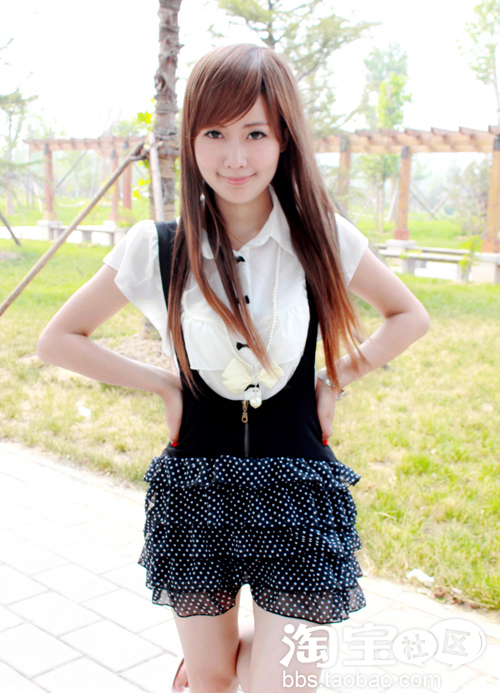 可爱的甜心点点与雪纺蛋糕裙的结合,最主要的是背带的设计,让这款衣衣俏皮又可爱!