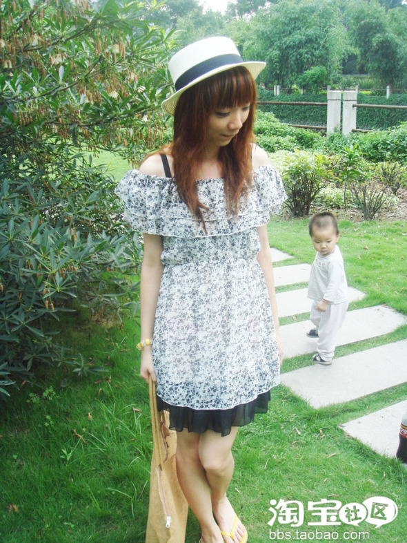 雪纺连衣裙,大方又淑女,肩膀可以露的