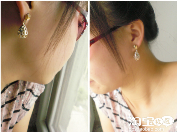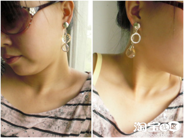 而且是前后钉哦。可以变成两个耳钉用。长长的感觉,很时尚吧。