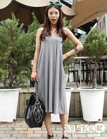 运动棉抹胸式及小腿长裙,这样的长度不会给MM们带来不便啦,没有束腰的设计显得更随意略带帅