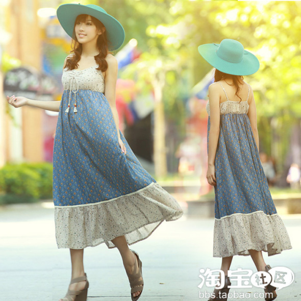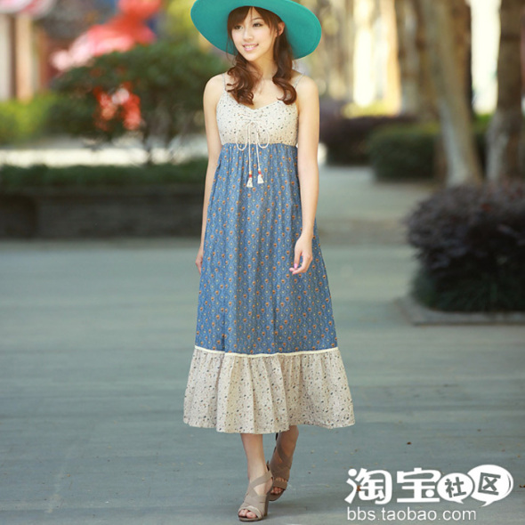 彩色的大大边的遮阳帽,温柔的碎花裙,