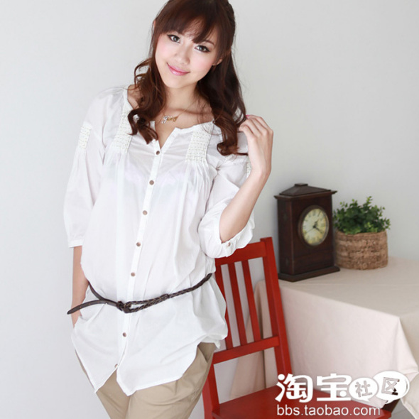 白与卡其完美的色系组合,公主袖长款的衬衣腰间随意的一条细牛皮腰带