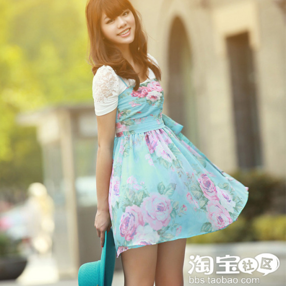 那爱不释手的公主裙?大胆的饱和度高的大花朵抹胸吊带,