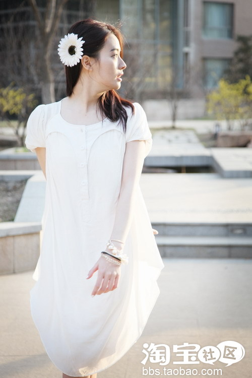 十、纯美白裙+大朵菊花卡子+多层珠串手链,打造恬谧纯情公主