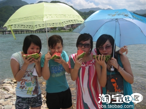 4个傻女人 啃西瓜照 哈哈 见笑了~~