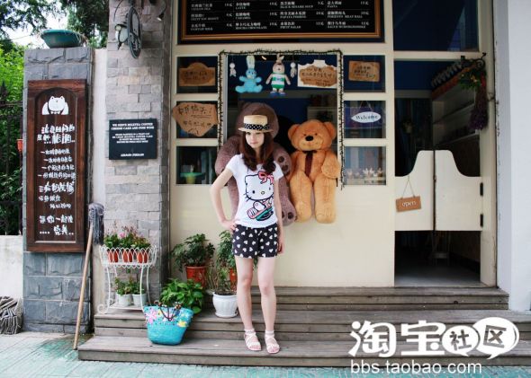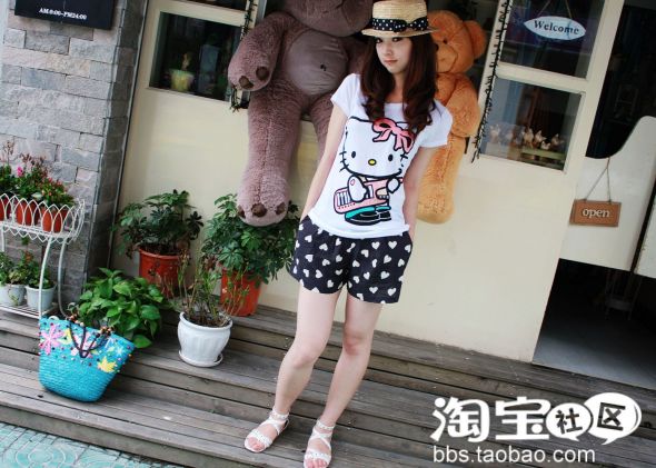 淡淡的纯白色T恤,搭配TOPSHOP爱心小短裤