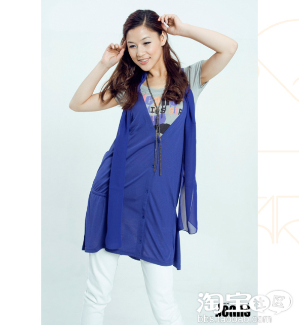 马夹式背心长款开衫设计,个性时尚。配有系带,可取下。