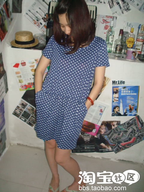 复古波点连衣裙