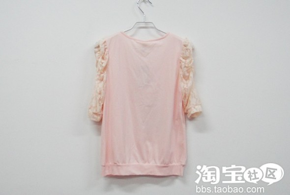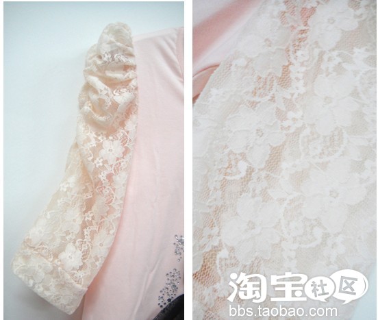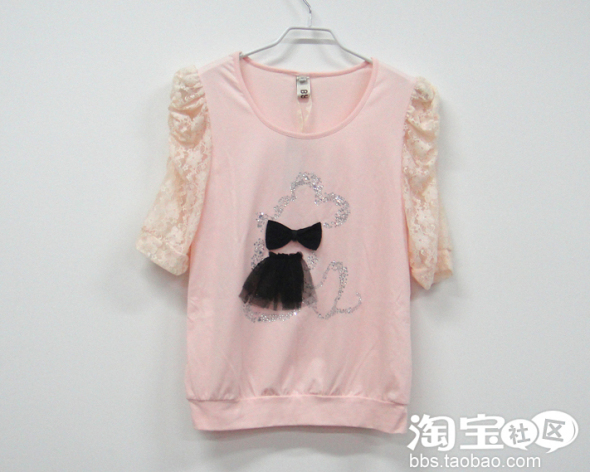 韩版超粉嫩的蕾丝袖水钻米老鼠全棉T恤