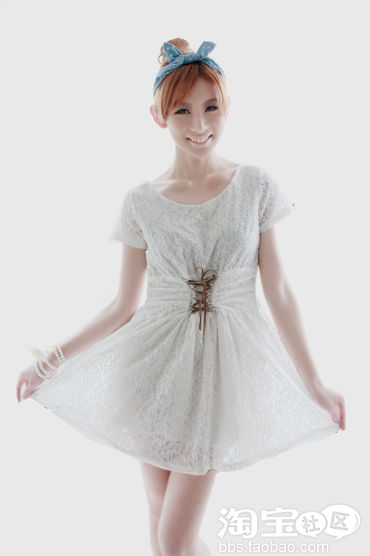 超级复古系带的收要装饰,白色蕾丝镂空纯净