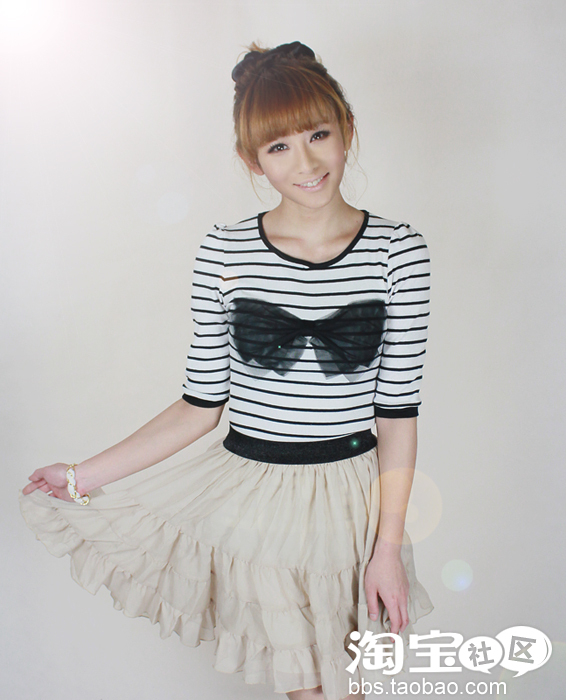 6.条纹蝴蝶结t+荷叶边雪纺大摆裙