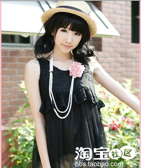 胸口的蕾丝的设计很是特别,适合为了减肥而不那么丰满的MM。腰封对于腰肢纤细的MM来说,永远不会过时。搭配卷发或者直发都相宜,妆容以清新可爱为主,奥黛丽.赫本的粗眉毛很适合。