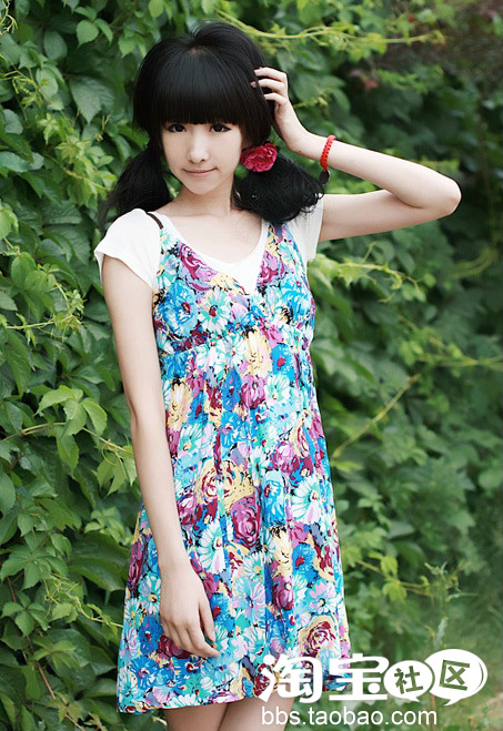 高腰设计可以让步那么高挑的MM也显得很有风姿。鲜艳的花朵色彩设计,很漂亮,很时尚,盘发或者小卷发都OK,可以尝试小烟熏妆的妆容来搭配,会很有小花猫般的性感味道。