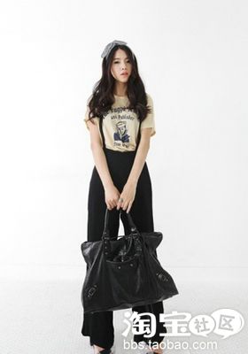黑色的 裤子最保险,在不方便的日子里穿着会比 短裙 短裤都合适,再搭一件小 碎花上装,依然甜美哟。
