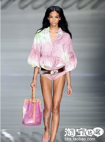 数码化的椰林海滩景象,让饱满的上衣与热辣的超短热裤组合出更富趣味的效果。