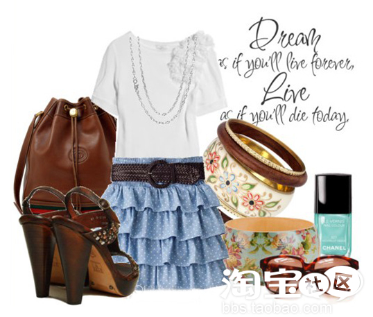 夏日可爱女生最in的LOOK无疑就是穿出甜美的感觉,高腰的波点荷叶边短裙可爱又性感,搭配高跟鞋的造型会更衬托出清纯的气质,再带上复古花纹的大手镯,哪个男生见了不动心呢!