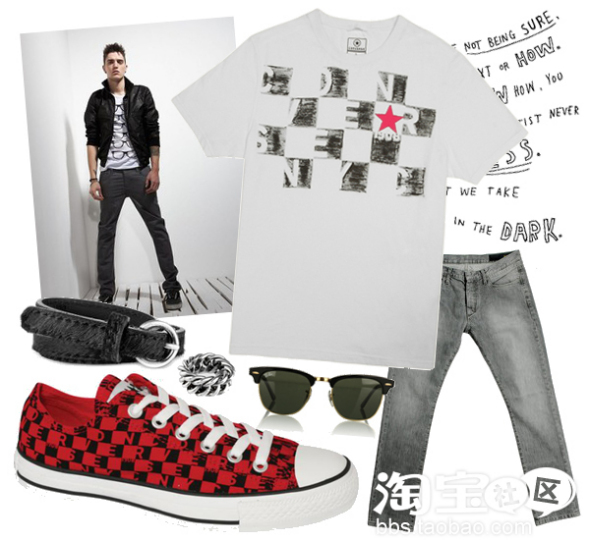 年轻就是本钱,活力运动的款式是最能体现这种街头随意的装扮,本季值得推荐的新款Tee还真是不少,胸前印有大logo的形式渐渐演变成趣味的组合,与之呼应的还有同款的红黑球鞋,棋盘式样的pattren创新又不过疯狂,整身搭配有点玩世不恭,让女孩看了一定心跳加速呢!