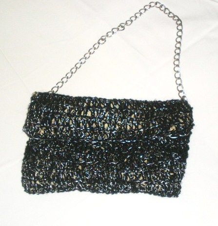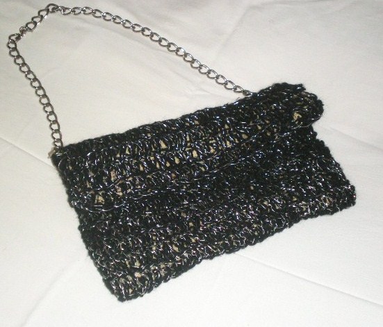 黑线和银色松紧带一直绕着钩短针 钩出40cm*80cm的长方形