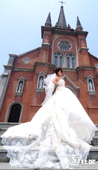 专程去苏州的虎丘花了2140块大洋买了一款欧式婚纱。