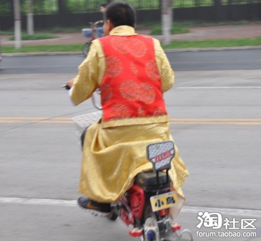 看到没?这个就是伴郎啦。走不动骑车走跟着呢。