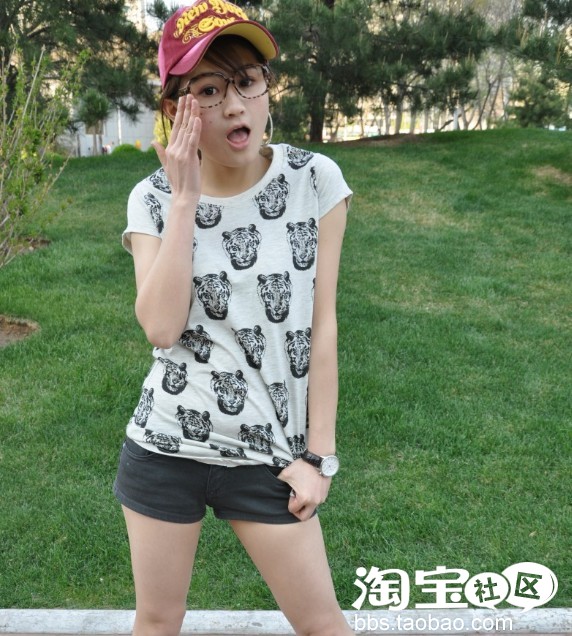 \(^o^)/老虎头的T 本身已经足够花哨啦 我们选择了韩国味十足的酒红色棒球棒 给灰色的T恤 增加亮点 让你不至于在人群中淹没啦