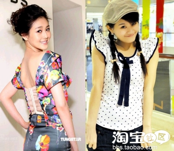 来说说这款 花瓣领的T 众多韩国品牌争相推出类似的款 流行是什么. .....流行就是 你抄抄我 我抄抄你...然后 就产生了时下最流行的元素 或者蕾丝 或者花瓣 ...