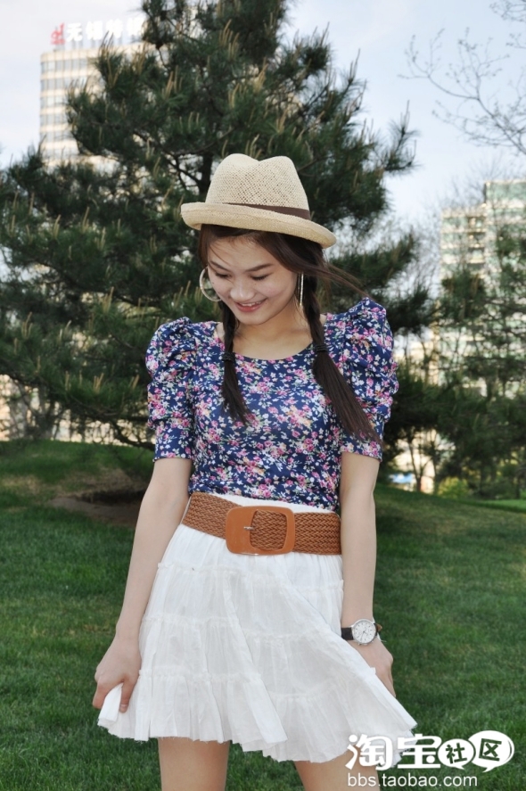 实在是想不出来了.....这样多的亮点 在一件T恤上 我们当然是选择了最简单的白色半裙来中和过于绚丽的色差了....