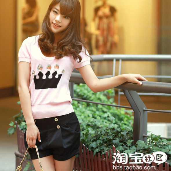 皇冠图案针织小衫可爱中带有小女人的情怀,利索干练的黑色小西裤,将我变身气质女王