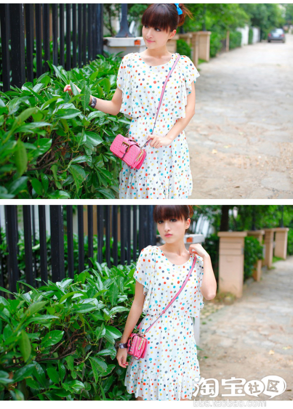同样是高腰设计的连衣裙,小小的波点很适合娇小的MM哦