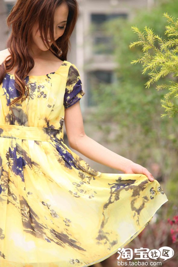 d 浅黄色的纱质衣服,很具有浪漫气氛,因此不妨采用作为长的晚礼服或睡衣。