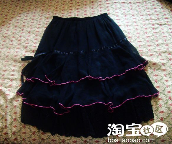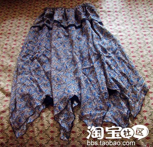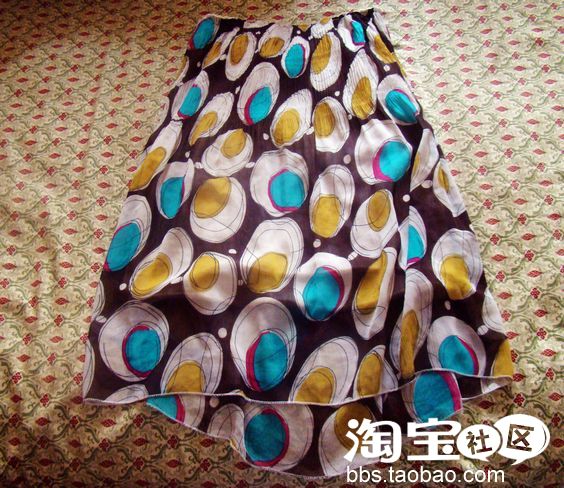 这款裙裙是短裙里最爱的,雪纺的,里面有衬。每层一个图案,松紧口的。50块大洋左右,也来自淘宝。