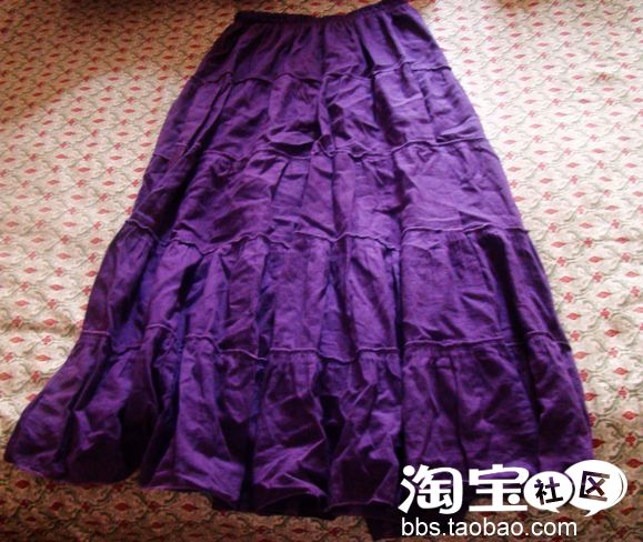 )紫色的长裙子,棉布的,里面有很短的一个里衬。摆超大的。波西米亚吧~