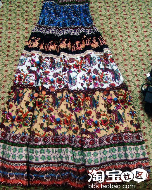这个很喜欢,朋友从丽江买来送我的。花花长裙。上面还有一些亮片和珠子,走起来还有叮叮当当的响声~也是纯棉50块大洋~