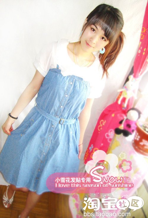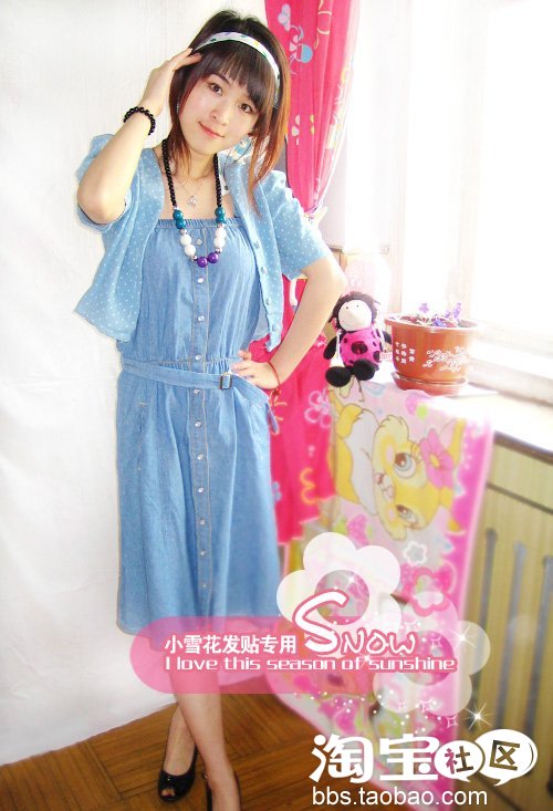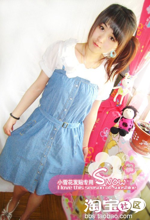 收到这款裙裙,第一感觉,就是好舒服哦,无论从做工和布料都很精致,所以,我想到了搭上我的白色雪纺衫,蓝白相间是不是更显清纯和可爱一些了呢?呼应主题,淑女裙也可以穿出可爱风!