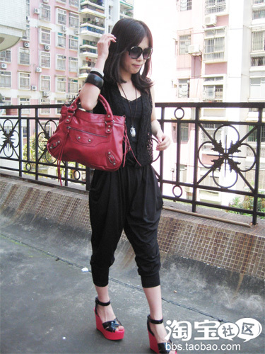 我觉得花色的裤子....配件不需要太高调....都是搭配黑色滴配件