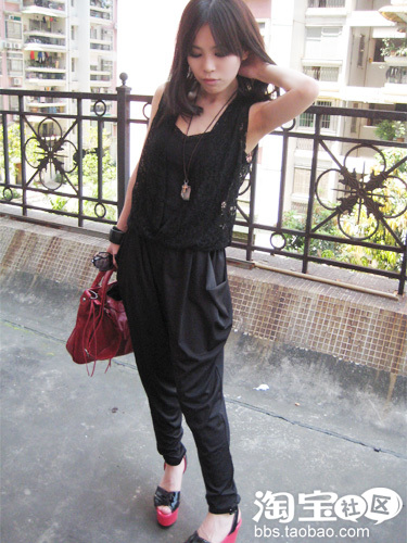 2.黑色蕾丝连体裤(要萝卜滴~这样才潮)+红包+厚底