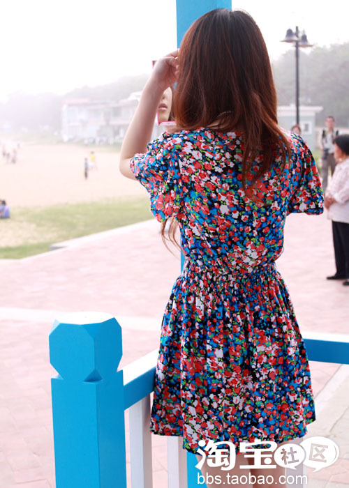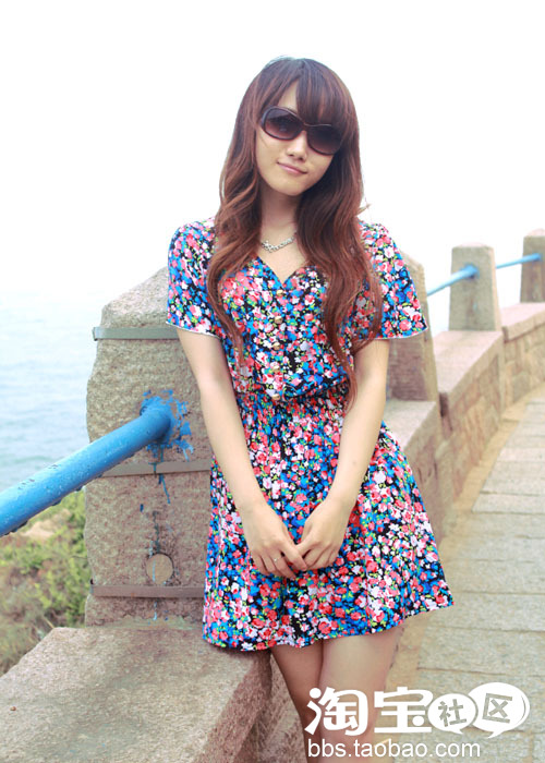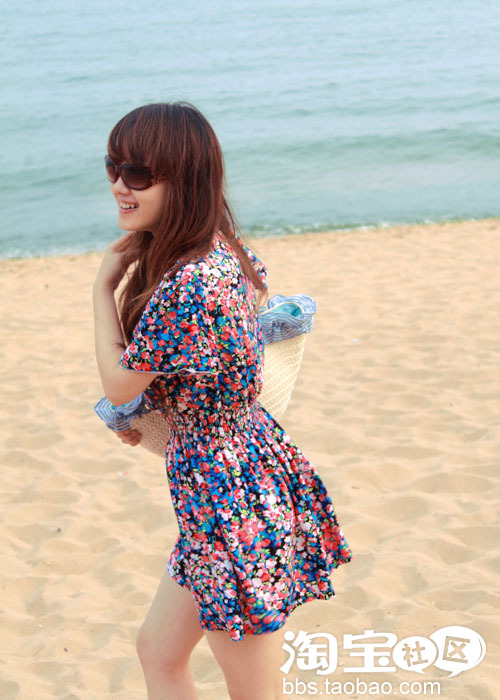 站在大海面前。自己太欢呼雀跃了。又蹦又跳有雀跃欢呼的。随行的小妞说我跟吃了兴奋剂一样。呵呵。是很久没有出来玩了。心情真是大好。加上穿着了一件油画风格的连衣裙。。颜色的绚烂。瞬间成为了海滩上的焦点哟。还有摄影师要求当模特拍一张照片呢。嘎嘎!~确实拉风。