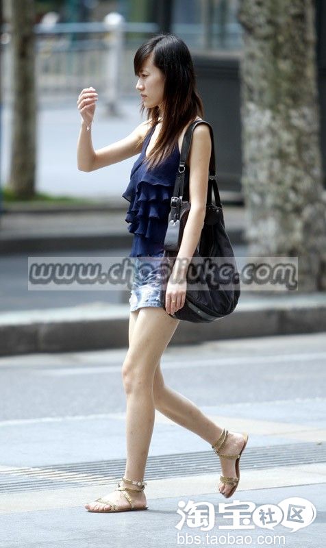 吊带蛋糕背心 牛仔短裤 鞋子同样很出众