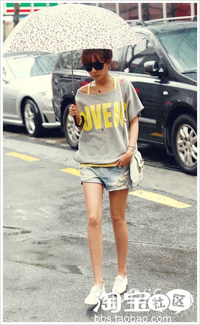 宽松的破洞牛仔短裤,街头型女搭配一件垮肩字母LogoT恤,叠穿吊带衫更有范儿。喜欢英伦范儿的MM可以大胆尝试牛津鞋,彩色的款式会更加打眼!