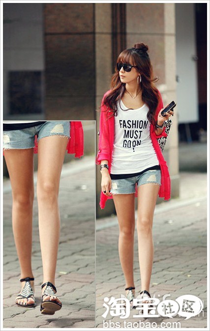 摇滚风格的牛仔短打,做旧效果的破洞是必不可少的最IN元素!再来一双明星味的绑带凉鞋,让Boylish的朋克帅气感来得更猛烈些吧!短袜与凉鞋的搭配,今年不再是土气的代名词,而是新潮的体现呢!