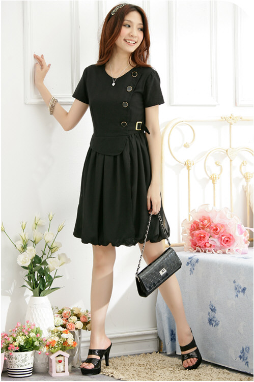 优雅名媛别致设计灯笼裙摆连衣裙黑色