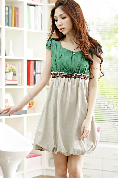 氷様青春光感配色连衣裙绿色(配黑色腰带)