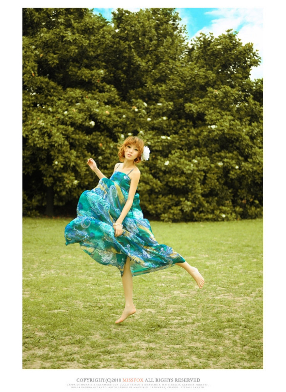 波西米亚风情PAYTY必备拖地式吊带连衣裙绿系