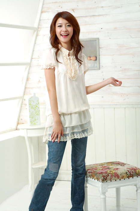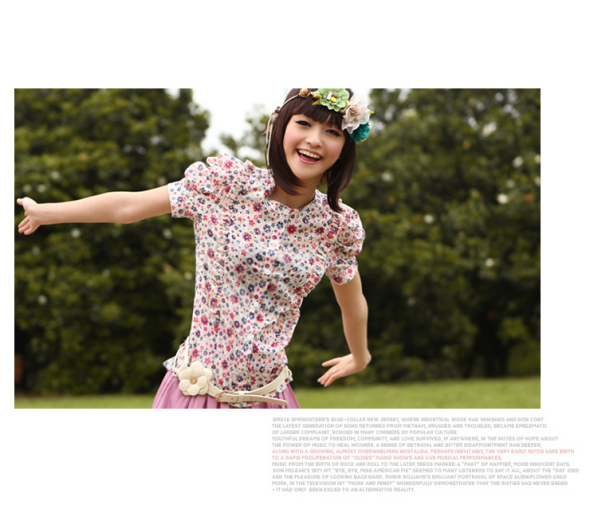 维罗妮卡の秘密花园雪纺上衣夏花粉