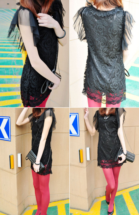 试想,如果搭配一件毛衣开衫,或者西装,露出下面飘逸的裙摆花边,美丽达人