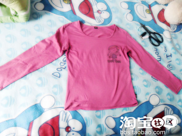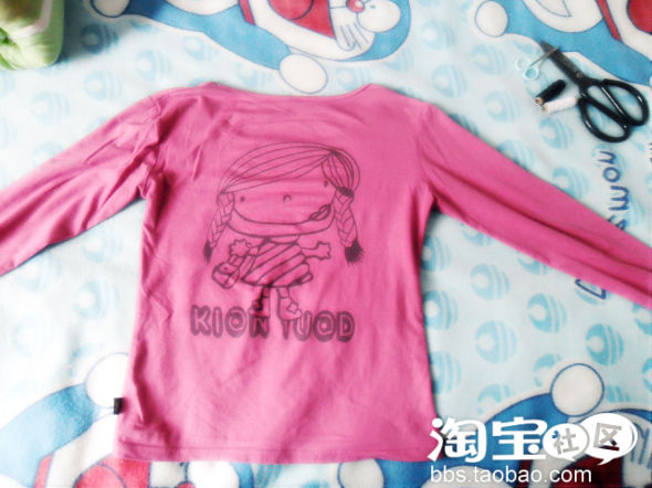 2、剪掉袖子(呵呵,因为老大的是秋天的衣服,给她剪成夏天的衣衣,这样她或许不会发现哦!