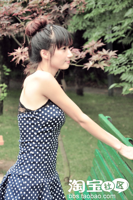 圆点长裙+黑色的小抹胸 很性感