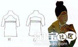 “合欢襟”由后向前系束是其主要特点。穿时由后及前,在胸前用一排扣子系合,或用绳带等系束。合欢襟的面料用织锦的居多,图案为四方连续。